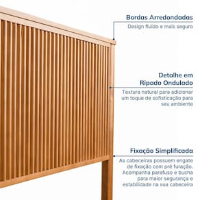 A Cabeceira Oiti, disponível nos tamanhos queen e casal, é a síntese perfeita de robustez e elegância em um design rústico sofisticado, trazendo um toque natural e aconchegante ao quarto. Produzida inteiramente em madeira maciça de pinus, a cabeceira possui um acabamento em verniz de alta qualidade que realça a tonalidade quente da madeira, criando um ambiente acolhedor. O grande destaque da cabeceira é o acabamento boleado, que confere uma textura refinada e visualmente impactante, elevando a peça a um novo patamar de sofisticação. Inspirada na robustez e beleza da árvore Oiti, esta cabeceira oferece uma combinação de durabilidade e estilo, ideal para quem valoriza um ambiente acolhedor sem abrir mão da funcionalidade e do bom gosto. Produto Montado: Sim Acabamento dos Pés: Verniz Altura dos Pés: 104 cm Altura Máxima dos Pés: 104.0000 Ambiente Principal: Quarto Cabeceira Estofada: Não codigo_ean: 7900288014993 Complexidade da Montagem: Baixa: pode ser montado por uma pessoa sozinha Cor: Marrom Cor do Produto: Marrom Escala de Brilho: Semi-Fosco Extensível: Não Fixação Box: Não Fixação na Parede: Sim Itens Inclusos: 01 Cabeceira para cama Queen, manual de montagem e kit ferragens Largura do Colchão Indicado: 158cm Linha ou Coleção: Oiti Manual de Montagem e Instalação: https://product-hub-prd.madeiramadeira.com.br/968542/documents/9d719051-3045-45c3-bfcd-9c71fdd515b5252953490317305004570951.pdf Marca: CabeCasa MadeiraMadeira Material dos Pés: Madeira Maciça Material Principal: Madeira Maciça Necessita Montagem: Sim Origem do Produto: Nacional Peso: 18 kg Possui Baú: Não Possui Espelho: Não Possui Mesa de Cabeceira: Não Possui Pés: 02 Possui Rodízio: Não Possui Possui Vidro: Não Recomendações de Uso, Manutenção e Limpeza: A limpeza deve ser feita com pano levemente umedecido, não utilizar produtos químicos ou abrasivos. Sapatas Niveladoras: Não Sistema de Montagem: Parafusos Tipo de Colchão: Queen Tipo de Madeira Maciça: Pinus Tipo de Madeira Maciça dos Pés: Pinus