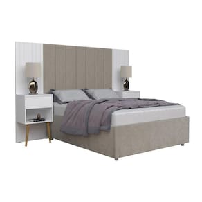 Cabeceira para Cama Box Casal Flex Zara Capitone Branco c/ 2 Mesas de Cabeceiras - Robel Móveis