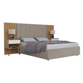 Cabeceira para Cama Box Casal Flex Zara Capitone Camarú Pérola c/ 2 Mesas de Cabeceiras - Robel Móveis