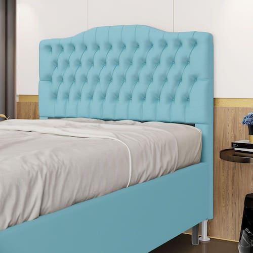 Características do Produto: Madeira de eucalipto proveniente de reflorestamento Fixação com grampos galvanizados Espuma Poliuretano D20 Tamanho: Queen para cama box de 158 cm Possui pés: Sim Tipo de pés: 2 pés PVC de 12 cm Possui detalhes em capitonê Embalagem: plástico bolha, papelão ondulado, malha, plástico Fixação diretamente no box através de frames Garantia de 3 meses contra defeitos de fábrica.