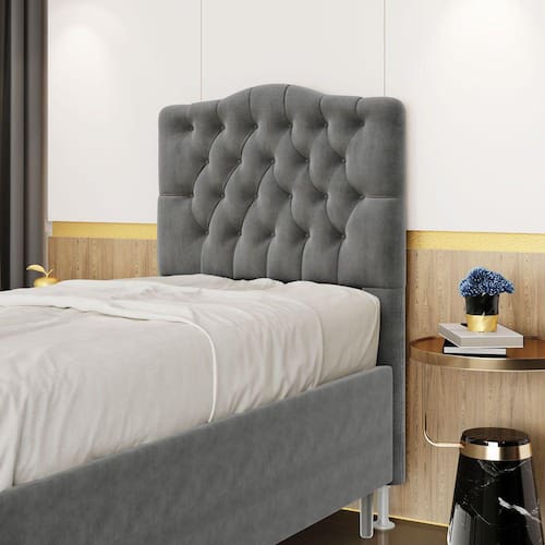 Características do Produto: Madeira de eucalipto proveniente de reflorestamento Fixação com grampos galvanizados Espuma Poliuretano D20 Tamanho: Solteiro para cama box de 88 cm Possui pés: Sim Tipo de pés: 2 pés PVC de 12 cm Possui detalhes em capitonê Embalagem: plástico bolha, papelão ondulado, malha, plástico Fixação diretamente no box através de frames Garantia de 3 meses contra defeitos de fábrica.