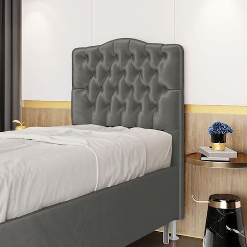 Características do Produto: Madeira de eucalipto proveniente de reflorestamento Fixação com grampos galvanizados Espuma Poliuretano D20 Tamanho: Solteiro para cama box de 88 cm Possui pés: Sim Tipo de pés: 2 pés PVC de 12 cm Possui detalhes em capitonê Embalagem: plástico bolha, papelão ondulado, malha, plástico Fixação diretamente no box através de frames Garantia de 3 meses contra defeitos de fábrica.
