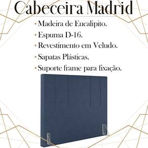 Cabeceira Queen 158 cm Madrid Veludo, ideal para inovar o seu quarto com toque luxuoso e ao mesmo tempo refinado. Estrutura em madeira de eucalipto, que oferece maior durabilidade ao produto. Composta por revestimento em tecido veludo, conta com espuma D-16 de altíssima qualidade, sapatas plásticas e acompanha frames para facilitar a fixação no box, é ideal para colchão Queen de 158 cm. Unindo elementos do design contemporâneo, que proporcionam uma ambientação moderna e com acabamentos sofisticados. Este móvel chegará na sua casa separado em 01 volume.