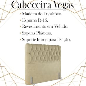 Cabeceira Queen 158 cm Vegas Veludo, é a escolha certa para você que busca conforto e modernidade, tornando o seu quarto muito mais versátil e sofisticado. Estrutura em madeira de eucalipto, que oferece maior durabilidade ao produto. Composta por revestimento em tecido veludo, conta com espuma D-16 de altíssima qualidade, sapatas plásticas e acompanha frames para facilitar a fixação no box, é ideal para colchão Queen de 158 cm. Com design que proporciona elegância, charme e luxuosidade ao seu quarto. Este móvel chegará na sua casa separado em 01 volume.