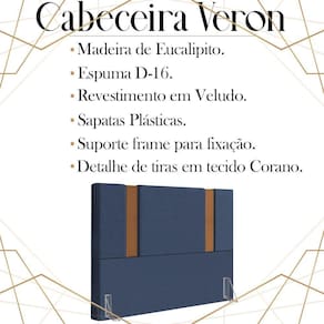Cabeceira Queen 158 cm Veron Veludo, é a escolha certa para você que busca conforto e modernidade, tornando o seu quarto muito mais versátil e sofisticado. Estrutura em madeira de eucalipto, que oferece maior durabilidade ao produto. Composta por revestimento em tecido veludo com detalhe de tiras em tecido corano, conta com espuma D-16 de altíssima qualidade, sapatas plásticas e acompanha frames para facilitar a fixação no box, é ideal para colchão Queen de 158 cm. Com design que proporciona elegância, charme e luxuosidade ao seu quarto. Este móvel chegará na sua casa separado em 01 volume.