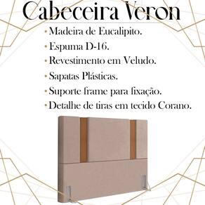 Cabeceira Queen 158 cm Veron Veludo, é a escolha certa para você que busca conforto e modernidade, tornando o seu quarto muito mais versátil e sofisticado. Estrutura em madeira de eucalipto, que oferece maior durabilidade ao produto. Composta por revestimento em tecido veludo com detalhe de tiras em tecido corano, conta com espuma D-16 de altíssima qualidade, sapatas plásticas e acompanha frames para facilitar a fixação no box, é ideal para colchão Queen de 158 cm. Com design que proporciona elegância, charme e luxuosidade ao seu quarto. Este móvel chegará na sua casa separado em 01 volume.