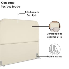 Cabeceira Queen Alana, moderna e aconchegante trazendo o design orgânico para seu quarto! Estrutura em Madeira de Eucalipto (reflorestada), estofada em espuma (densidade D-18) e revestida em tecido Suede (clássico aveludado com toque suave) com bordas curvas. Incluso Frame (metal resistente com reforço lateral e acabamento em pintura epóxi) para fixação em camas Box e sapatas plásticas. Este produto será entregue em 1 volume.