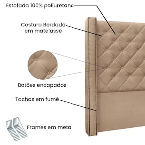A cabeceira Vicenza nos traz o estilo neoclássico, o deslumbre imperial do conforto e beleza. Visual moderno e sofisticado com o tamanho perfeito para o seu quarto. produzida com materiais de primeira linha, botões forrados no tecido com costura bordada que fazem dela uma obra de arte no seu quarto.