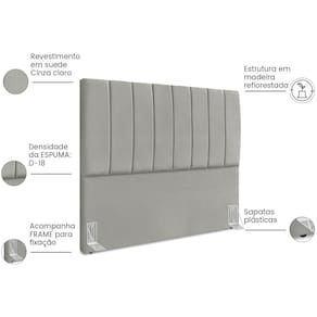 Madeira de eucaliptoTransforme o seu quarto com a Cabeceira Queen Allia. Projetada para oferecer um toque moderno e aconchegante, esta cabeceira é feita com uma estrutura em madeira de eucalipto, garantindo durabilidade e resistência. Com 160cm de largura, seu revestimento em suede e espuma de densidade D-18, proporcionam uma sensação agradável ao toque e um suporte confortável. As sapatas plásticas garantem estabilidade e proteção para o seu piso, evitando riscos e danos. Além disso, o produto vem acompanhado de frame de metal, facilitando a instalação e proporcionando maior segurança. Ideal para quem busca funcionalidade e estilo. Este móvel chegará em sua casa separado em 01 volume.