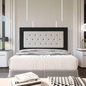 Cabeceira Queen 1,60m Havana Suede Branco Preto - Preto