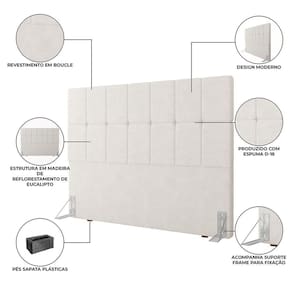 Cabeceira Linea Queen 162 cm com design moderno e revestimento em tecido bouclé. Produzida em eucalipto de reflorestamento e espuma D18, oferece conforto, durabilidade e acabamento sofisticado. Possui tratamento antialérgico e antiácaro, ideal para valorizar o quarto. Produto Montado: Sim Altura dos Pés: 1 cm Altura Máxima dos Pés: 1.0000 Ambiente Principal: Quarto Cabeceira Estofada: Sim codigo_ean: 7900288342676 Complexidade da Montagem: Baixa: pode ser montado por uma pessoa sozinha Cor: Branco Cor do Produto: Branco Densidade da Espuma: D-18 Escala de Brilho: Semi-Brilho Extensível: Não Fixação Box: Sim Fixação na Parede: Não Itens Inclusos: 1 Cabeceira e Kit Ferragens Largura do Colchão Indicado: 158cm Linha ou Coleção: Linea Manual de Montagem e Instalação: https://product-hub-prd.madeiramadeira.com.br/843957756/documents/d72f3b23-0168-4979-980e-ca938a8ee6e08754cf4ba254b3c11771246030.pdf Marca: Navega Móveis Material dos Pés: Plástico Material Principal: Madeira Maciça Necessita Montagem: Sim Origem do Produto: Nacional Peso: 9,1 kg Possui Baú: Não Possui Espelho: Não Possui LED: Não Possui Mesa de Cabeceira: Não Possui Pés: 02 Possui Rodízio: Não Possui Possui Vidro: Não Recomendações de Uso, Manutenção e Limpeza: Limpar com um pano úmido e detergente neutro Sistema de Montagem: Parafusar o Frame na Cabeceira Tipo de Colchão: Queen Tipo de Madeira Maciça: Pinus Marca: Não Informado