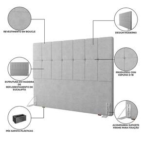 Cabeceira Linea Queen 162 cm com design moderno e revestimento em tecido bouclé. Produzida em eucalipto de reflorestamento e espuma D18, oferece conforto, durabilidade e acabamento sofisticado. Possui tratamento antialérgico e antiácaro, ideal para valorizar o quarto. Produto Montado: Sim Altura dos Pés: 1 cm Altura Máxima dos Pés: 1.0000 Ambiente Principal: Quarto Cabeceira Estofada: Sim codigo_ean: 7900288342690 Complexidade da Montagem: Baixa: pode ser montado por uma pessoa sozinha Cor: Cinza Escuro Cor do Produto: Cinza Escuro Densidade da Espuma: D-18 Escala de Brilho: Semi-Brilho Extensível: Não Fixação Box: Sim Fixação na Parede: Não Itens Inclusos: 1 Cabeceira e Kit Ferragens Largura do Colchão Indicado: 158cm Linha ou Coleção: Linea Manual de Montagem e Instalação: https://product-hub-prd.madeiramadeira.com.br/715765801/documents/056e3f41-6c7e-490f-be4c-a0b4c775207b8754cf4ba254b3c11771246030.pdf Marca: Navega Móveis Material dos Pés: Plástico Material Principal: Madeira Maciça Necessita Montagem: Sim Origem do Produto: Nacional Peso: 9,1 kg Possui Baú: Não Possui Espelho: Não Possui LED: Não Possui Mesa de Cabeceira: Não Possui Pés: 02 Possui Rodízio: Não Possui Possui Vidro: Não Recomendações de Uso, Manutenção e Limpeza: Limpar com um pano úmido e detergente neutro Sistema de Montagem: Parafusar o Frame na Cabeceira Tipo de Colchão: Queen Tipo de Madeira Maciça: Pinus Marca: Não Informado