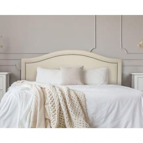 Cabeceira Queen Curva Luxo 160x60 Courino Off White - Tachas Fumê