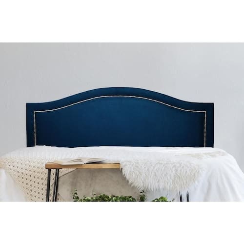 Cabeceira Queen Curva Luxo 160x60 Suede Azul - Tachas Prata