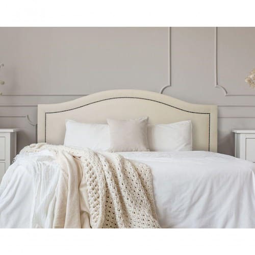 Cabeceira Queen Curva Luxo 160x60 Suede Off White - Tachas Fumê
