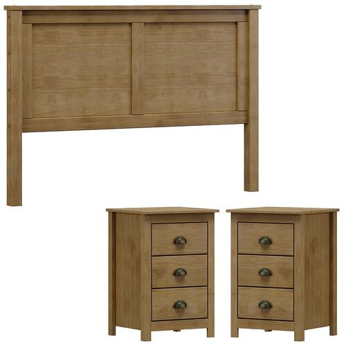 Modelo: Cabeceira Queen e 02 Mesas Cabeceira 3 Gv Madeira Maciça