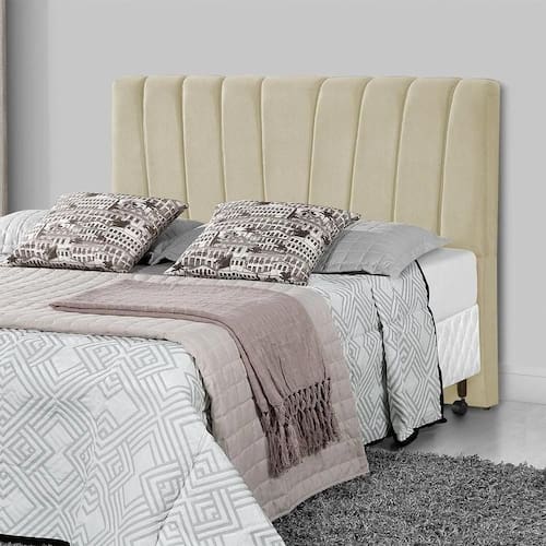 Cabeceira Queen Estofada Americana Premium 160cm Veludo Bege