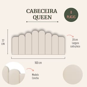 Cabeceira Queen Estofada Kit 8 Placas Concha - Courino Marfim / Off White - Bege Claro