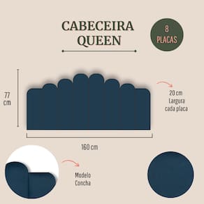 Cabeceira Queen Estofada Kit 8 Placas Concha - Veludo Azul Marinho
