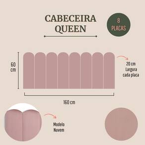 Cabeceira Queen Estofada Kit 8 Placas Nuvem - Veludo Nude