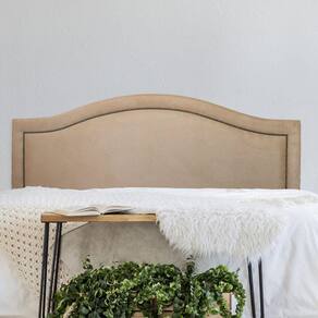 Cabeceira Queen Estofada para Cama Box com Tachas 160x60cm Curva Luxo Bege/Fumê