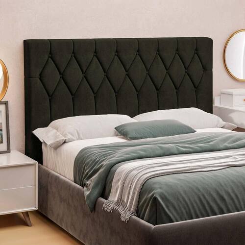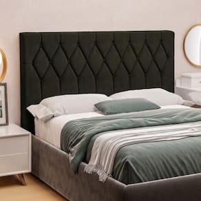 Sua estrutura é feita a partir de chapas de MDF, MDP e madeira de eucalipto, de acordo com a necessidade de cada parte. Claro que o conforto também é necessário, por isso conta com um estofamento feito com espuma de densidade D13. Além disso, seu revestimento é feito com veloplus, tecido sintético excelente para quem procura beleza e elegância, promovendo durabilidade e resistência. Para dar um toque a mais, ela ainda conta com um bordado botonê.