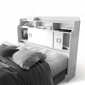 Equipada com gavetas corrediças e nichos, essa cabeceira não apenas adiciona um toque de estilo ao seu espaço, mas também oferece soluções de armazenamento convenientes!