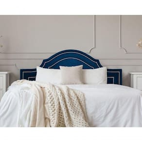 Cabeceira Queen Provençal Luxo Dupla 160x60 Suede Azul - Tachas Prata