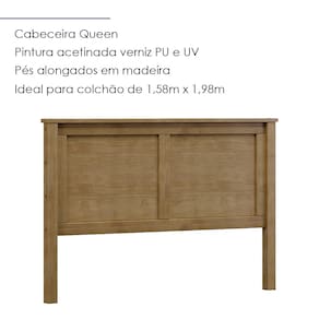 Cabeceira Queen projetada para quem busca um móvel sofisticado e atemporal. Com 167cm de largura e produzida em madeira maciça de pinus de reflorestamento, sua estrutura robusta garante durabilidade e resistência. Seu acabamento com pintura acetinada em verniz PU e UV realça a beleza natural da madeira enquanto protege contra desgastes do dia a dia. Os pés alongados em madeira trazem leveza e sofisticação ao móvel. Tamanho do colchão indicado 1,58m x 1,98m. Este móvel chegará em sua casa separado em 02 volumes.