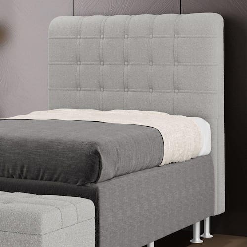 A Cabeceira Rana possui um design soft e delicado, perfeita para pessoas com um estilo mais moderno. Possui detalhes em botões e plaquetas laterais decorativas, tudo isso com um ótimo custo benefício. Possui dois pés de 12 cm e 2 frames para a sustentação do box, não sendo necessário furar a sua cama, apenas encaixa-la nos suporte da cabeceira. Adquira já!Dimensões do ProdutoLargura: 90 cmAltura: 124 cmProfundidade: 18 cmPeso: 10 KgDimensões do Produto EmbaladoLargura: 92 cmAltura: 114 cmProfundidade: 19 cmPeso: 12 KgCaracterísticas do Produto:Madeira de eucalipto proveniente de reflorestamentoFixação com grampos galvanizadosEspuma Poliuretano D20Revestimento: BouclêCor: CinzaTamanho: Solteiro para cama box de 88 cmPossui pés: SimTipo de pés: 2 pés 12 cmEmbalagem: plástico bolha, papelão ondulado, malha, plásticoFixação diretamente no box através de framesGarantia de 3 meses contra defeitos de fábrica.