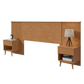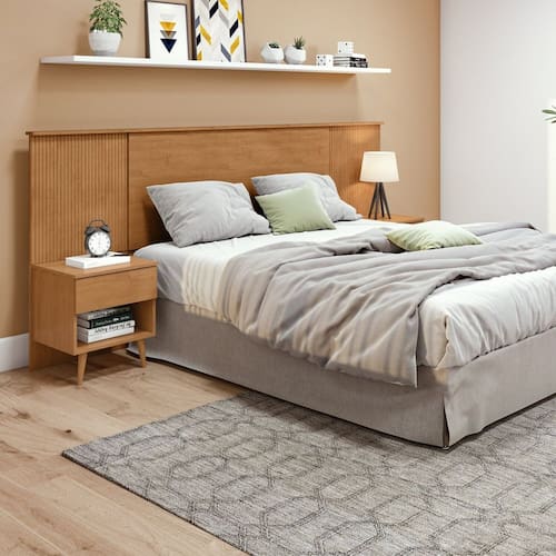 Cabeceira Regulável Painel Ripado Pés Palito em Madeira Like Amêndoa Clean - Marrom
