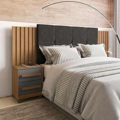 A cabeceira tem um design incrível para decorar o seu quarto.