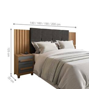 PRODUTO: CABECEIRA | LARGURA DO COLCHÃO INDICADO: 140 cm x 160 cm x 190 cm x 200 cm | POSSUI MESA DE CABECEIRA: SIM | COR PREDOMINANTE: CINAMOMO GRAFITE | LARGURA DO PRODUTO (CM): 290 | COMPRIMENTO DO PRODUTO (CM): 35 | MATERIAL PARA FILTRO: MDF | PESO PRODUTO COM EMBALAGEM (KG): 44.3 | ESTADO DE ORIGEM: SP | CABECEIRA ESTOFADA: SIM | EXTENSÍVEL: SIM | INSTRUÇÕES/CUIDADOS: Limpar com pano macio e seco, não utilizar produtos abrasivos. | ALTURA DO PRODUTO COM EMBALAGEM (CM): 17 | CORES DO PRODUTO (FILTRO DE CORES): Cinamomo Grafite | CONTEÚDO DA EMBALAGEM: 1 Cabeceira | PESO DO PRODUTO (KG): 44.3 | COMPRIMENTO PRODUTO COM EMBALAGEM (CM): 138 | ALTURA DO PRODUTO (CM): 125 | DESCRIÇÃO DO TAMANHO: Altura: 125 cm x Largura: 290 cm x Comprimento: 35 cm | LARGURA PRODUTO COM EMBALAGEM (CM): 93 | MATERIAL PRINCIPAL: MDF | PRODUTO PRECISA DE MONTAGEM?: Sim, a montagem é simples mas sugerimos a contratação do nosso serviço de montagem (para os CEPs em que o serviço está disponível) ou de algum experiente de sua preferência | MARCA: RV MOVEIS