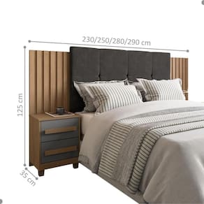 POSSUI MESA DE CABECEIRA: SIM | ALTURA DO PRODUTO (CM): 125 | LARGURA DO COLCHÃO INDICADO: 140 cm x 160 cm x 190 cm x 200 cm | MATERIAL PRINCIPAL: MDF | COMPRIMENTO PRODUTO COM EMBALAGEM (CM): 138 | PESO DO PRODUTO (KG): | DESCRIÇÃO DO TAMANHO: Altura: 125 cm x Largura: 290 cm x Comprimento: 35 cm | CORES DO PRODUTO (FILTRO DE CORES): Cinamomo Grafite | MATERIAL PARA FILTRO: MDF | ESTADO DE ORIGEM: SP | CONTEÚDO DA EMBALAGEM: 1 Cabeceira | PRODUTO PRECISA DE MONTAGEM?: Sim, a montagem é simples mas sugerimos a contratação do nosso de montagem (para os CEPs em que o está disponível) ou de algum experiente de sua preferência | MARCA: RV MOVEIS | EXTENSÍVEL: SIM | LARGURA PRODUTO COM EMBALAGEM (CM): 93 | CABECEIRA ESTOFADA: SIM | COR PREDOMINANTE: CINAMOMO GRAFITE | LARGURA DO PRODUTO (CM): 290 | ALTURA DO PRODUTO COM EMBALAGEM (CM): 17 | COMPRIMENTO DO PRODUTO (CM): 35 | INSTRUÇÕES/CUIDADOS: Limpar com pano macio e seco, não utilizar produtos abrasivos. | PESO PRODUTO COM EMBALAGEM (KG): | PRODUTO: CABECEIRA