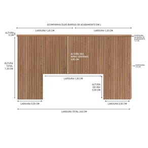 Acompanha duas barras de acabamento em L de 120cm cada, para fixação na extremidade superior da cabeceira.