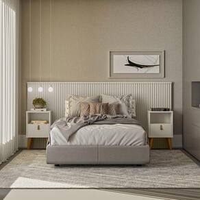 A Cabeceira com Mesas de Cabeceira trás conforto e beleza a seu quarto com seu lindo design ripado.