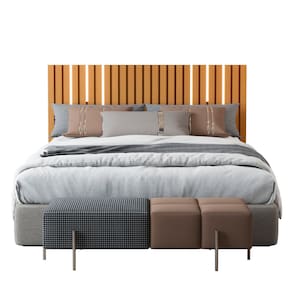 Cabeceira Ripada de Casal com Kit Led Yokohama Nature - Marrom