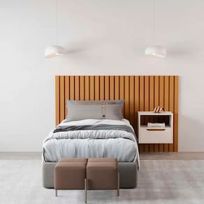 Com a cabeceira Ripada da Rede Móveis adicione estilo e durabilidade à sua decoração com nossa estrutura ripada de 24mm, feita com os melhores materiais em MDF e MDP para garantir resistência e um visual moderno. Cabeceira Suspensa: Transforme seu quarto com elegância e praticidade com nossa cabeceira suspensa. Oferecendo um estilo moderno e funcional, maximiza o espaço disponível enquanto adiciona um toque de sofisticação ao ambiente.