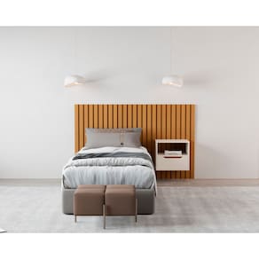 Cabeceira Ripado Cama de Solteiro Maracá Nature Com Mesa de Cabeceira Jatobá OffWhite - Rede Móveis