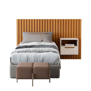Cabeceira Ripado Para Cama de Solteiro Maracá Nature Com Mesa de Cabeceira Jatobá OffWhite - Rede Móveis - Marrom