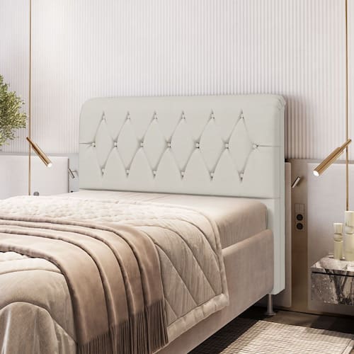 Características do Produto: Madeira de eucalipto proveniente de reflorestamento Fixação com grampos galvanizados Espuma Poliuretano D20 Revestimento: Couro Artificial Cor: Bege Tamanho: Casal-Queen para cama box de 138 cm Possui pés: Sim Tipo de pés: 2 pés 12 cm Embalagem: Papelão, plástico Fixação diretamente no box através de frames Garantia de 3 meses contra defeitos de fábrica.