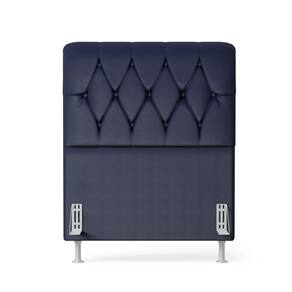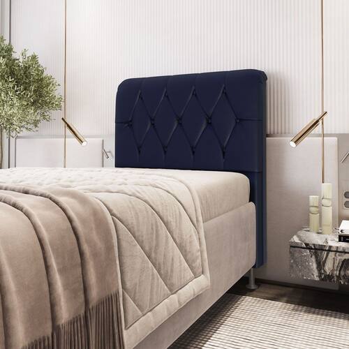 Características do Produto: Madeira de eucalipto proveniente de reflorestamento Fixação com grampos galvanizados Espuma Poliuretano D20 Revestimento: Couro Artificial Cor: Azul Tamanho: Solteiro para cama box de 88 cm Possui pés: Sim Tipo de pés: 2 pés 12 cm Embalagem: Papelão, plástico Fixação diretamente no box através de frames Garantia de 3 meses contra defeitos de fábrica.