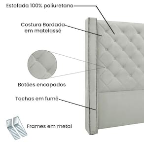 A cabeceira Vicenza nos traz o estilo neoclássico, o deslumbre imperial do conforto e beleza. Visual moderno e sofisticado com o tamanho perfeito para o seu quarto. produzida com materiais de primeira linha, botões forrados no tecido com costura bordada que fazem dela uma obra de arte no seu quarto.