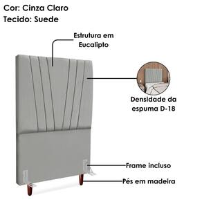 Cabeceira Solteiro Bélgica, moderna e aconchegante trazendo elegância para seu quarto! Estrutura em Madeira de Eucalipto (reflorestada), estofada em espuma (densidade D-18) e revestida em tecido Suede (clássico aveludado com toque suave). Incluso Frame (metal resistente com reforço lateral e acabamento em pintura epóxi) para fixação em camas Box e pés em madeira maciça (12 cm). Pode haver variação no design do frame dependendo do lote de peças. A função do acessório e usabilidade permanece a mesma. Este produto será entregue em 1 volume.