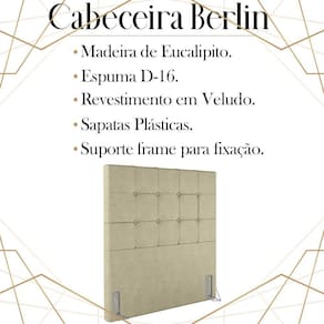 Cabeceira Solteiro 88 cm Berlin Veludo, ideal para inovar o seu quarto com toque luxuoso e ao mesmo tempo refinado. Estrutura em madeira de eucalipto, que oferece maior durabilidade ao produto. Composta por revestimento em tecido veludo, conta com espuma D-16 de altíssima qualidade, sapatas plásticas e acompanha frames para facilitar a fixação no box, é ideal para colchão Solteiro de 88 cm. Unindo elementos do design contemporâneo, que proporcionam uma ambientação moderna e com acabamentos sofisticados. Este móvel chegará na sua casa separado em 01 volume.