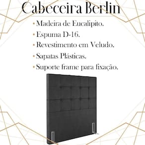 Cabeceira Solteiro 88 cm Berlin Veludo, ideal para inovar o seu quarto com toque luxuoso e ao mesmo tempo refinado. Estrutura em madeira de eucalipto, que oferece maior durabilidade ao produto. Composta por revestimento em tecido veludo, conta com espuma D-16 de altíssima qualidade, sapatas plásticas e acompanha frames para facilitar a fixação no box, é ideal para colchão Solteiro de 88 cm. Unindo elementos do design contemporâneo, que proporcionam uma ambientação moderna e com acabamentos sofisticados. Este móvel chegará na sua casa separado em 01 volume.