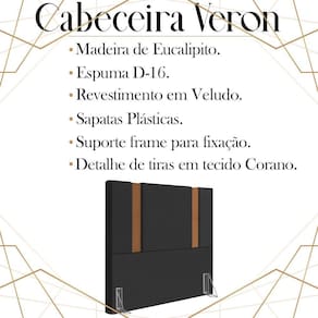 Cabeceira Solteiro 88 cm Veron Veludo Preto Soon