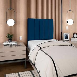 Cabeceira Solteiro 90cm Allia Suede Azul Marinho Rm Azul Marinho