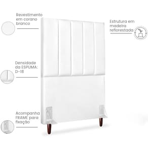 A Cabeceira Solteiro Arlla combina conforto e estilo, sendo a escolha perfeita para quem busca modernidade. Com 90cm de largura e revestimento em corano que proporciona um visual sofisticado, facilitando a limpeza. A espuma de densidade D-18 garante o suporte e conforto do produto. Sua estrutura em madeira de eucalipto oferece durabilidade e resistência, tornando-a uma peça durável. Conta com dois pés em plástico PVC rosqueáveis e frame de metal, que reforçam a estabilidade e segurança. A Cabeceira Arlla se adapta a qualquer decoração, com uma variedade de cores disponíveis que permitem que você escolha a que melhor combina com seu espaço. Este móvel chegará em sua casa separado em 01 volume.