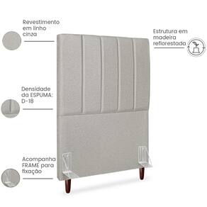 Cabeceira Solteiro 90cm Arlla Linho Cinza RM